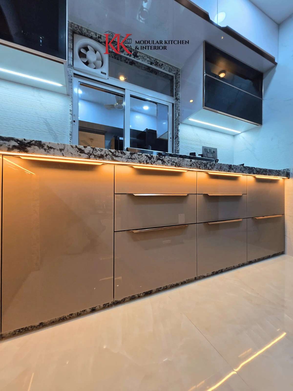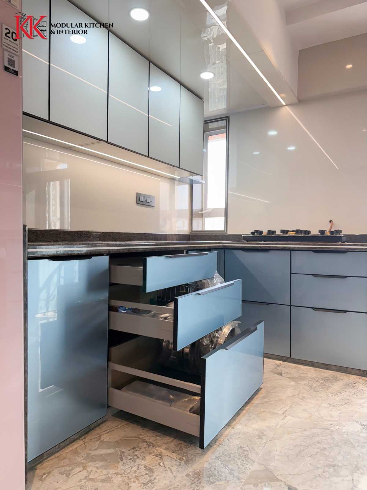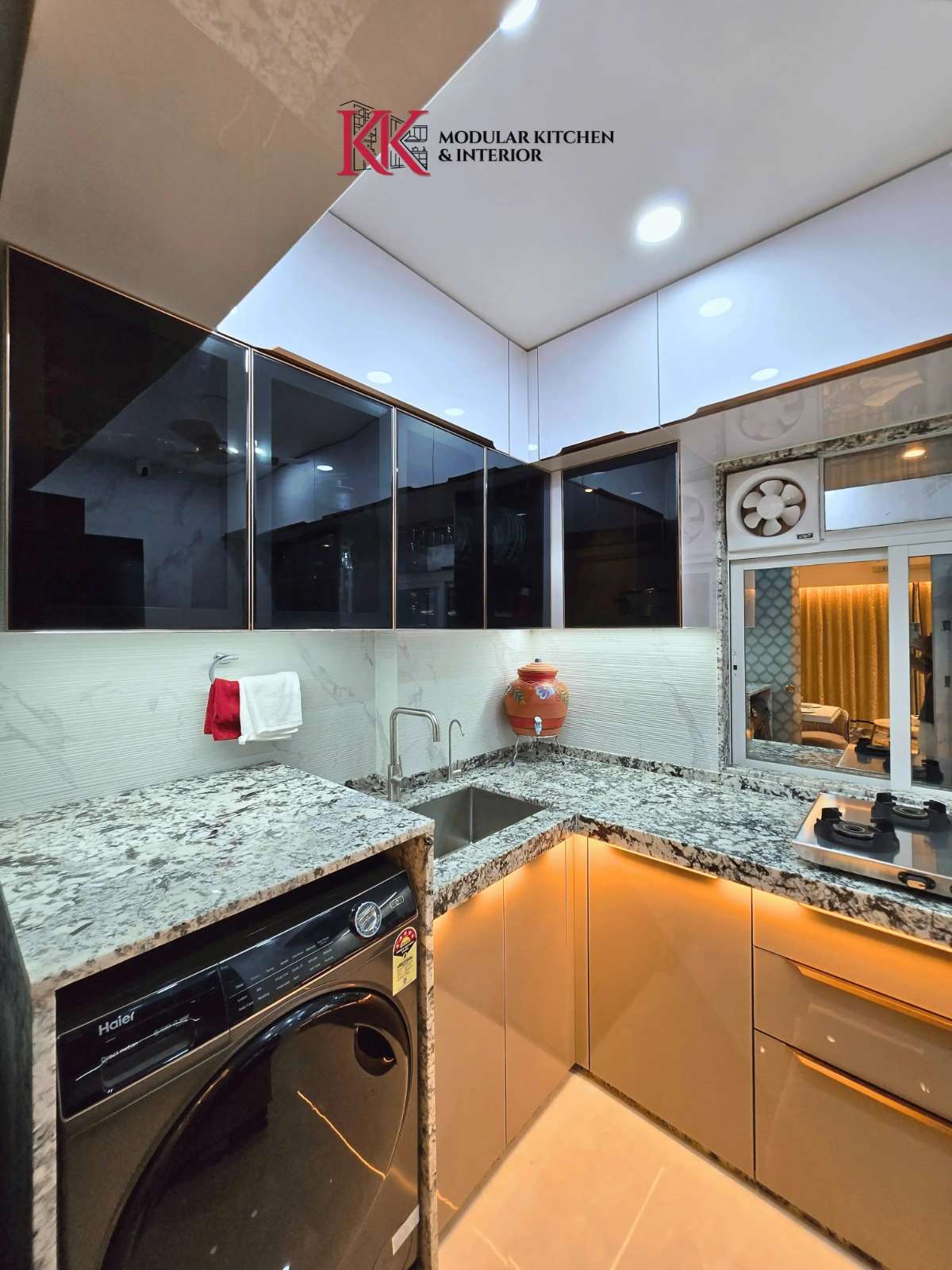 Back painted Glass Modular Kitchen Design - Project Patliputra, Andheri, Mumbai | KK Modular Kitchen
