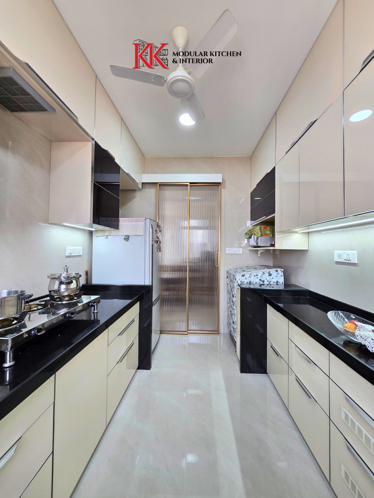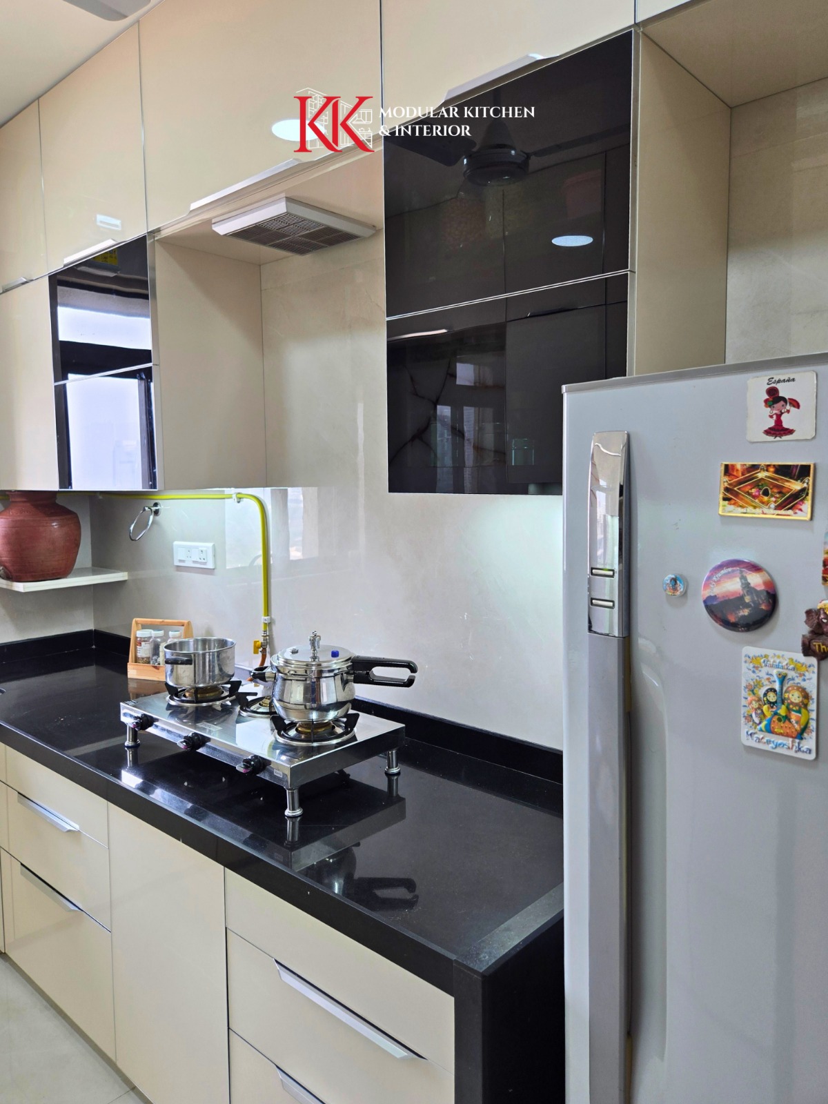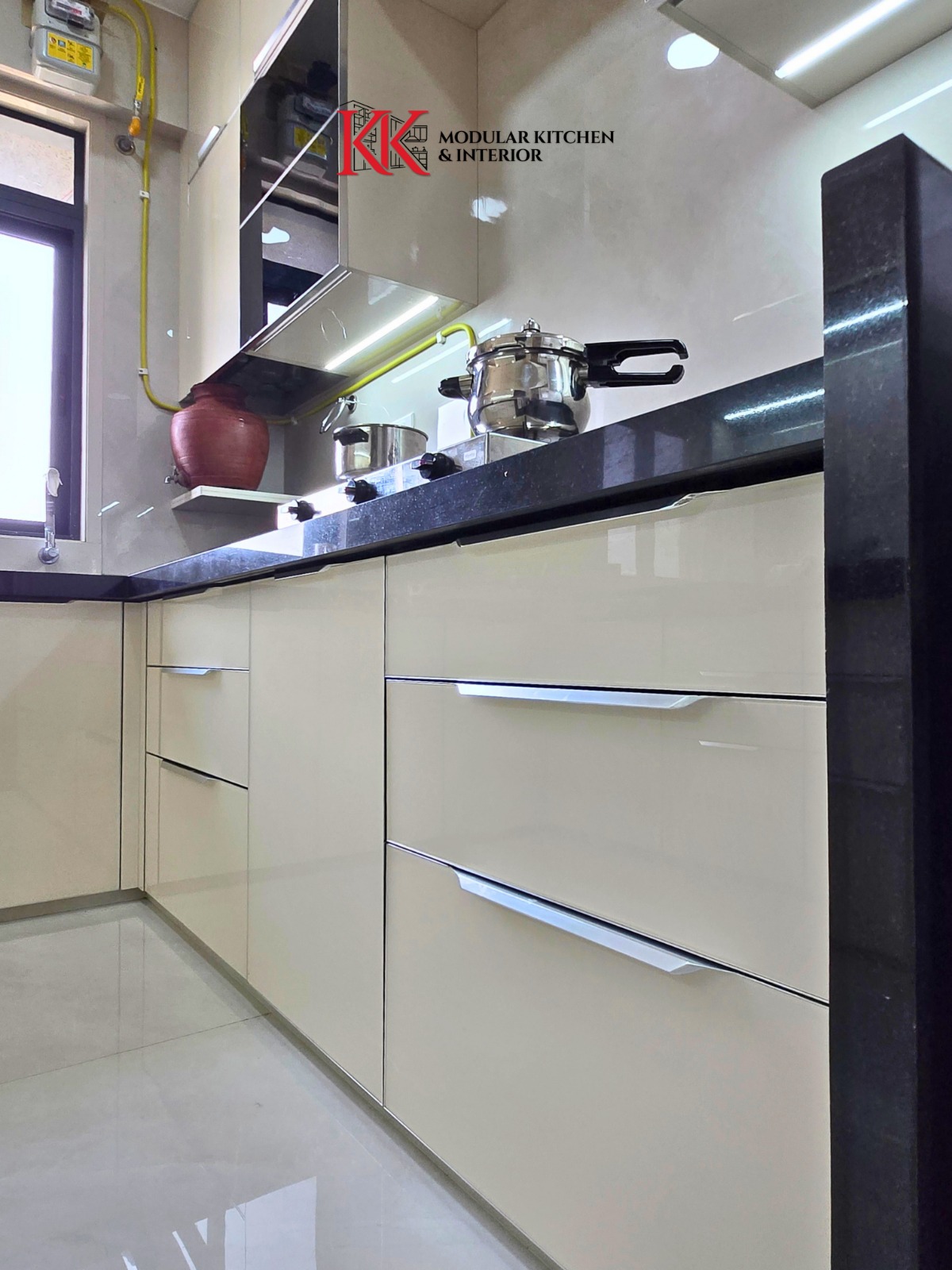 Parallel Modular Kitchen with Back Painted Glass @JP Decks, Goregaon, Mumbai | KK Modular Kitchen