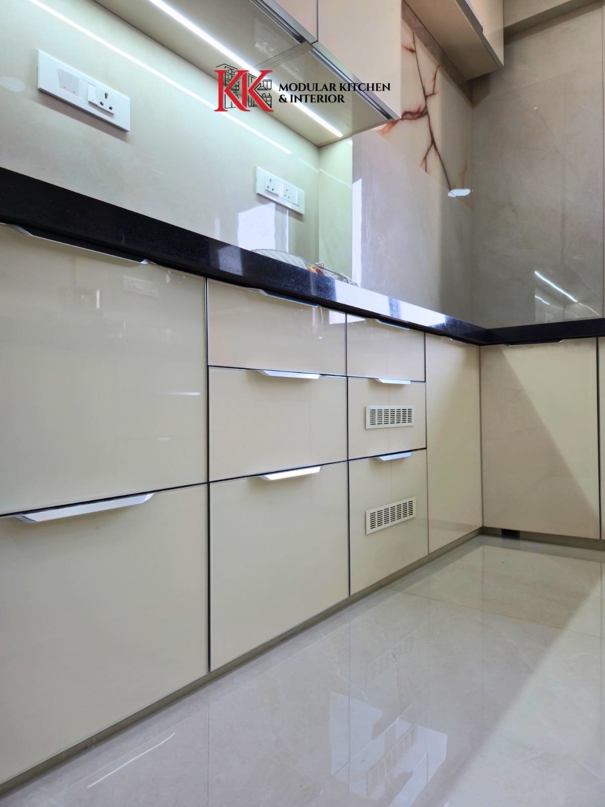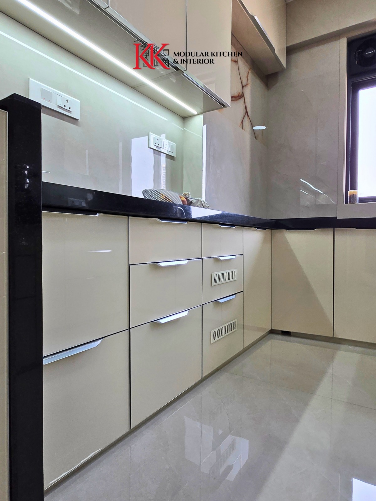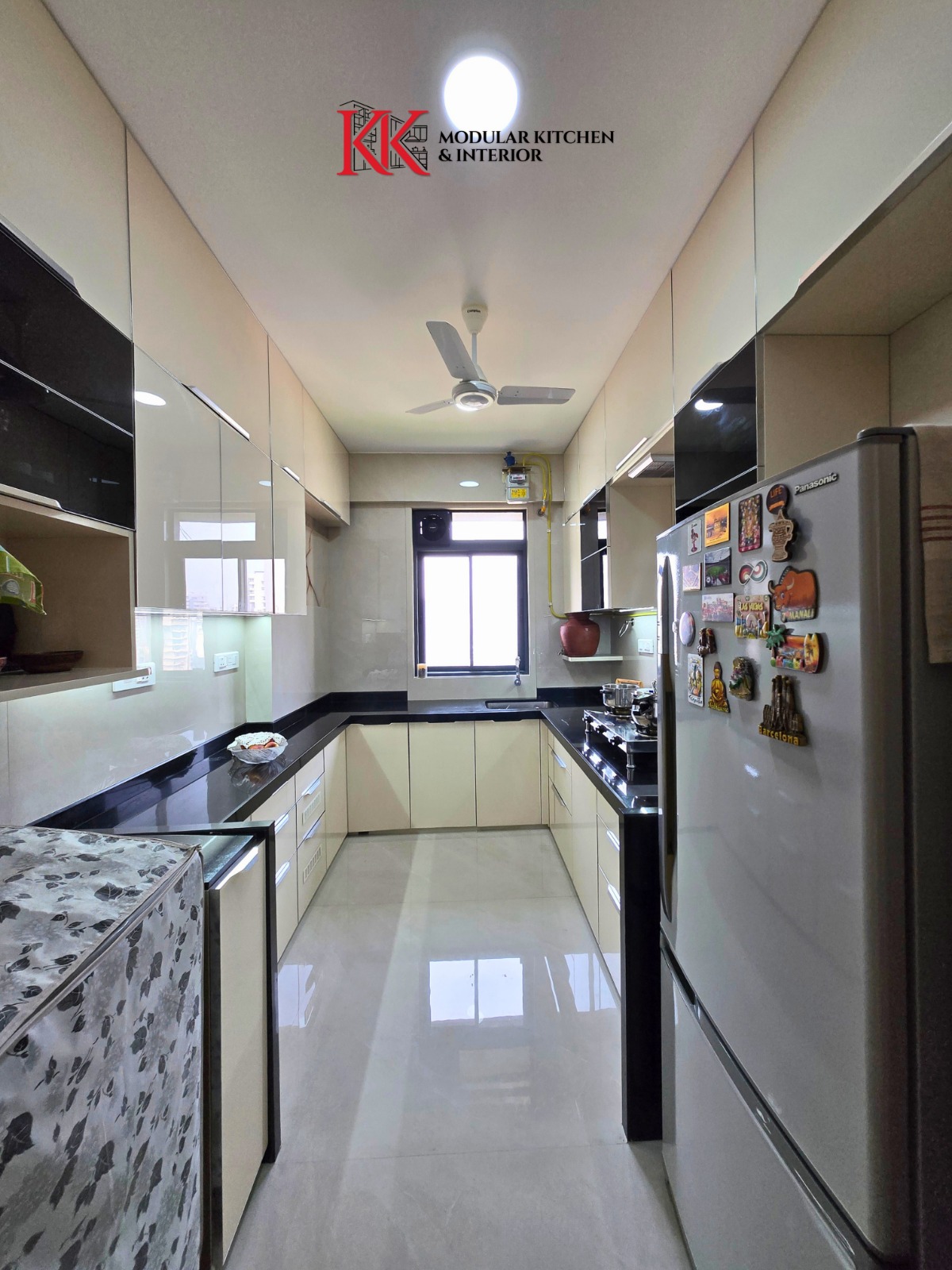 Parallel Modular Kitchen with Back Painted Glass @JP Decks, Goregaon, Mumbai | KK Modular Kitchen